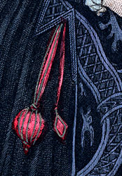 Gland : substantif masculin ; est un gros bouton couvert d’or, de soie, de laine, de fil, autour duquel on fait plusieurs ouvrages. Il sert pour attacher un collet , une chemise, pour servir d’ornement à des mouchoirs , à des carreaux à s’agenouiller, à des carrosses et harnais. Gland : se dit d'une espèce de bouton couvert de perles, ou de longs filets d'or, d'argent, de soie, de laine, ou de fil, avec une tête ouvragée des mêmes matières, d'où pendent les filets. Les glands de fil font partie du négoce des marchandes lingères, et des marchands Merciers qui font le commerce de toiles fines et de dentelles ; les autres se font par les tissutiers-rubaniers-frangiers. Les glands de fil paient en France les droits d'entrée à raison de 12 sols la livre, et ceux de sortie sur le pied de 8 sols suivant le tarif de 1664. In - Dictionnaire universel de commerce de Jacques Savary des Bruslons édition 1748 Vers Louise Labé portyant un gland Retour à la liste des termes du Petit dictionnaire de l'habillement